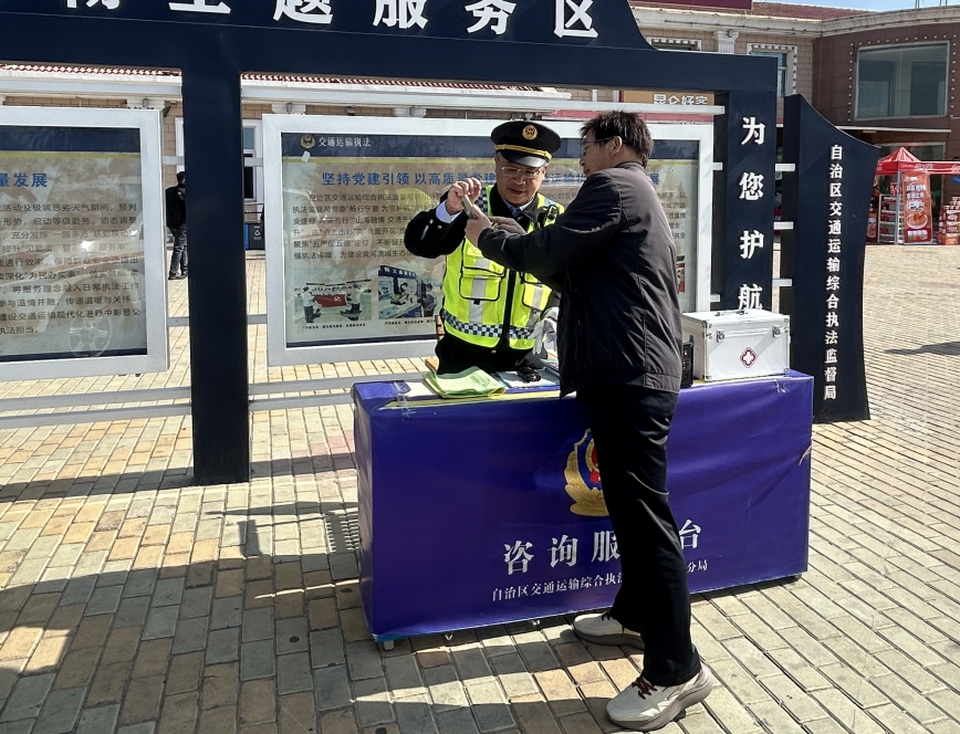 暖心服务,提升出行“幸福感”。分局始终践行“交通执法、为民服务”理念,在辖区收费站、服务区、景区门口等关键节点设置“交通运输综合执法服务台”,提供热水、医药箱、充气泵、简易维修工具等便民物资,主动为过往司乘排忧解难。执法人员化身“护航员”“服务员”,涌现出为身体不适老人送水、协助车辆更换轮胎等一幕幕暖心故事,收获了过往旅客的点赞。同时,加强恶劣天气预警提示、路况信息发布与出行引导,通过多渠道实时更新路况、天气及管控信息,助力公众合理规划行程,有效提升出行满意度。