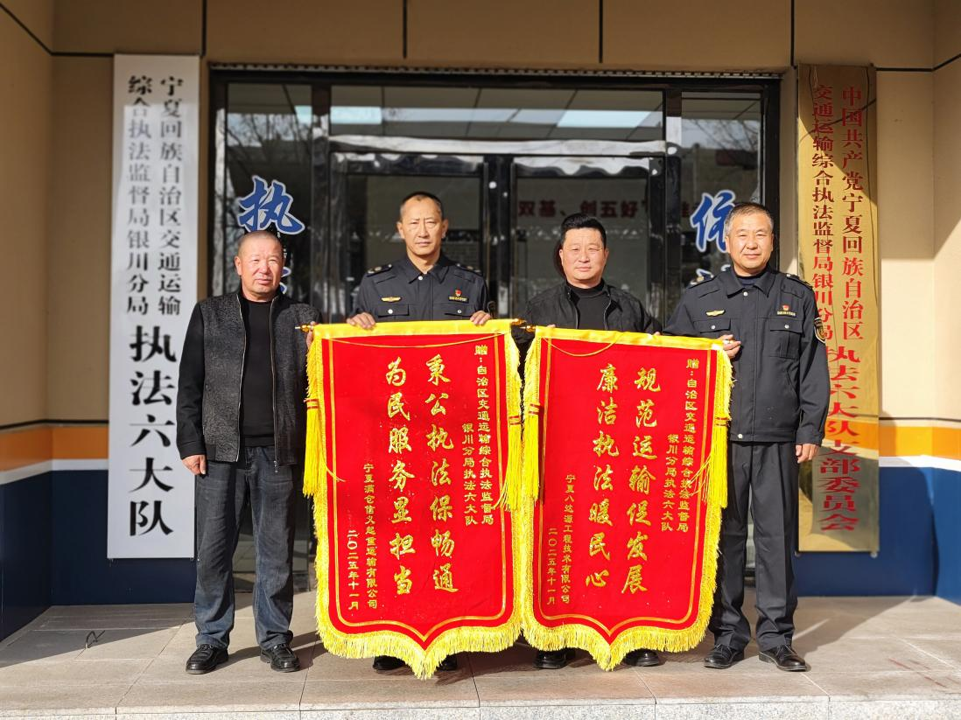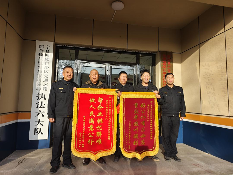 “帮企业排忧解难,做人民满意公仆”——深秋时节,自治区交通运输综合执法监督局银川分局执法六大队荣誉墙上,五天内新增的五面锦旗格外醒目。