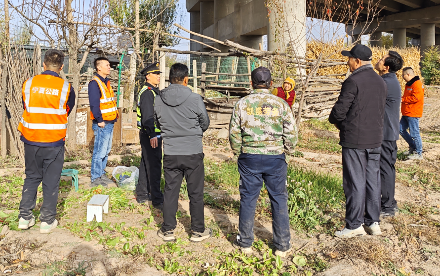 面对这一情况,执法九大队联合灵武东公路养护站、东塔镇综合执法办、黎明村村委组成联合工作组,共同推进问题化解。工作组深入现场,通过“法规宣讲+案例警示”提升村民安全意识,同时认真听取村民在劳动力、运输工具等方面的实际困难,积极协调协助清理方案,体现执法温度。村干部也充分发挥基层动员作用,配合开展思想工作。