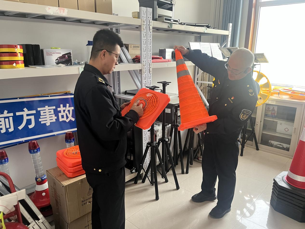内部自检是履职尽责的“重要保障”。为确保执法工作高效有序开展,分局组织开展内部安全自检行动。对执法记录仪、反光背心、警示灯具等执法装备进行全面检查,及时更换老化、损坏设备,保证每一件装备性能完好、随时可用;同时对所有执法车辆开展安全性能检测,重点检查刹车、轮胎、灯光等关键部件,同步做好车辆清洁与油料补给,为节日期间执勤执法提供坚实支撑。