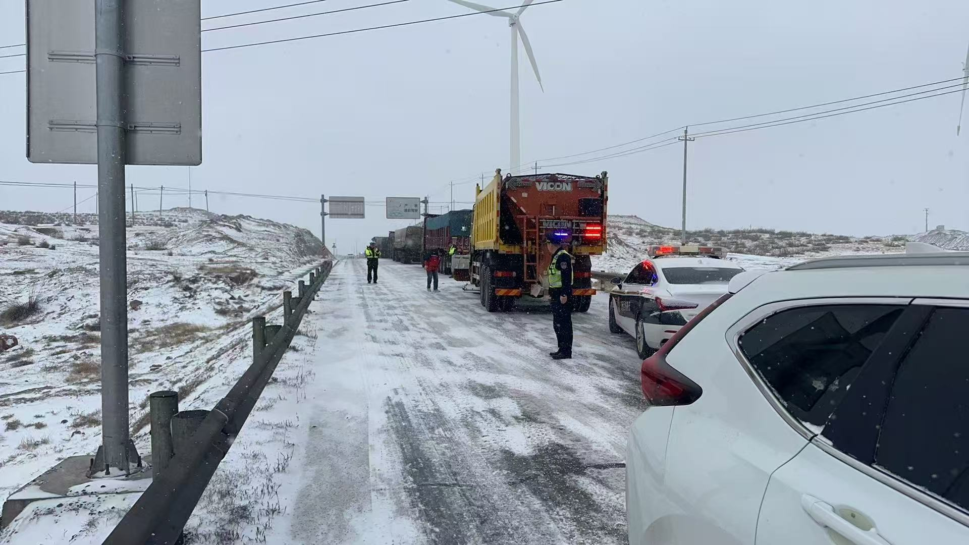 大队高度重视恶劣天气应对工作。在接收到降雪天气预报后,大队立即召开专题会议,分析研判雪情可能对辖区G344、G338等国省干线及重点桥梁、坡道、弯道造成的影响。结合以往工作经验及辖区路网特点,提前与红寺堡养护站等单位进行沟通对接,完善联勤联动机制,明确职责分工与处置流程。提前检查调试执法车辆防滑设备,确保人员、车辆、物资处于待命状态,为高效应对突发情况做好充分准备。