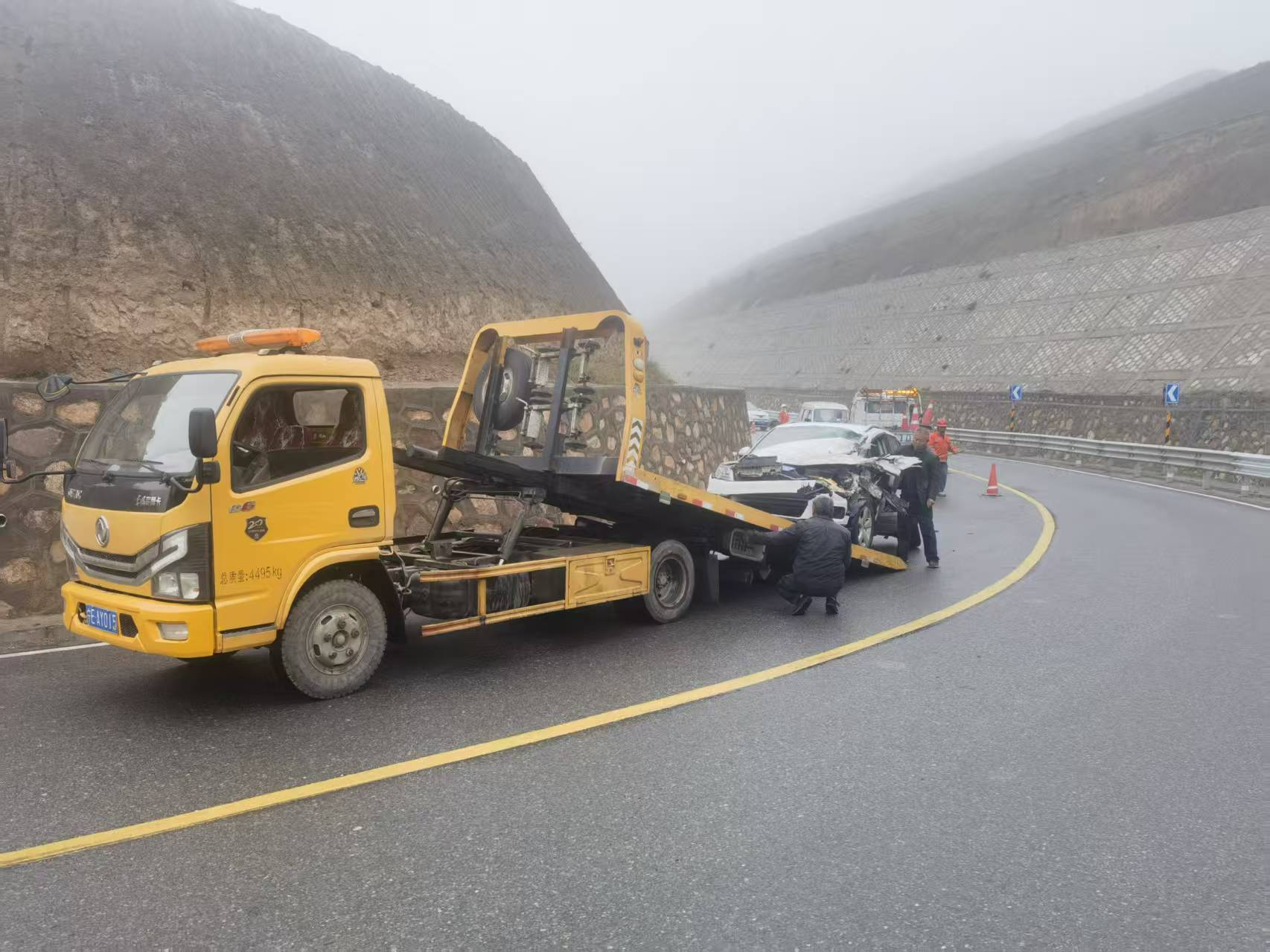 针对大雾多发的G341线K1764-K1771路段,大队加大巡查力度,执法车亮警示灯,执法人员通过喊话器提醒车辆“减速慢行、开防雾灯、保持车距”。10月11日,大队执法人员在该路段巡查时,发现一辆轿车因大雾天气视线不清,不慎滑入路边边沟。执法人员立即停车处置,第一时间确认司乘人员无受伤后,迅速在现场设置安全警戒区域,避免二次事故发生,同时联系清障救援车辆。经过近1小时的协同作业,事故车辆被成功拖离现场,路面清理完毕,道路恢复正常通行。整个处置过程高效有序,得到司乘人员连声致谢。