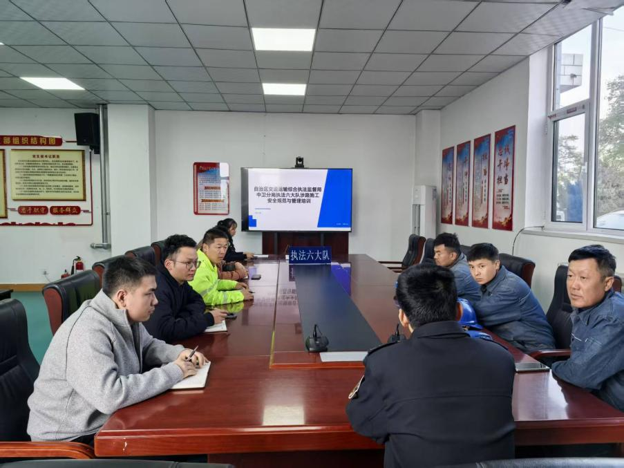 为切实加强施工作业现场安全监管,防范化解施工期间道路通行风险,近日,宁夏交通运输厅综合执法监督局中卫分局执法六大队组织召开涉路施工安全监管专题培训活动,与辖线施工企业单位面对面交流,以“划重点、明要求、互交流”精准监管与优质服务的双举措,护航道路通行与施工安全“双安全”。