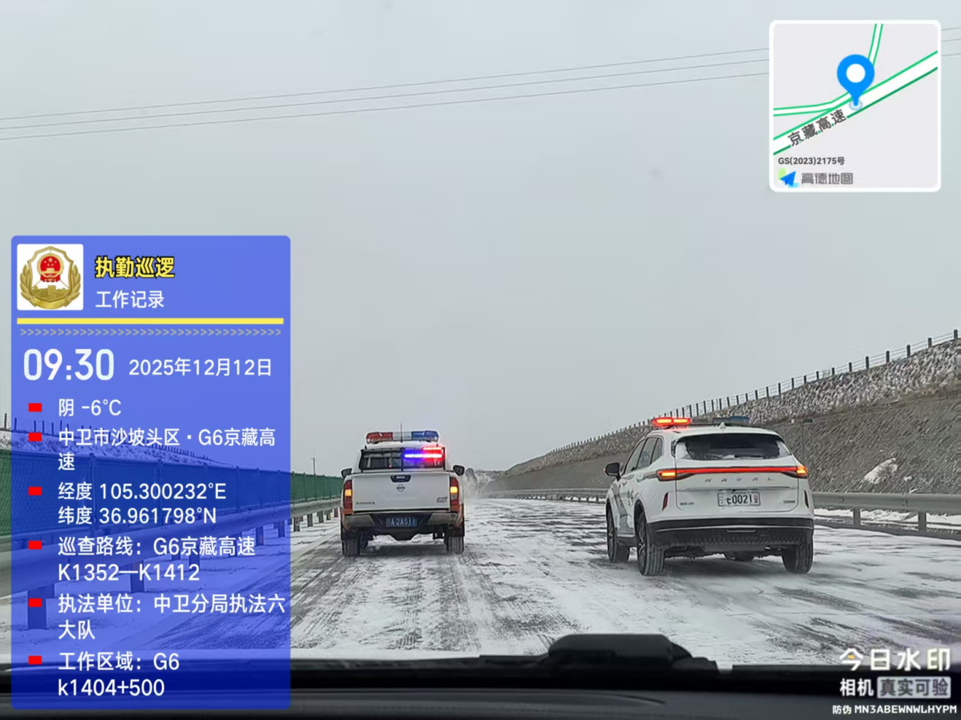 12月12日,降雪致辖区G70福银高速、G6京藏高速部分路段轻微结冰。宁夏交通运输厅执法监督局中卫分局执法六大队迅速联合交警、养护单位启动应急机制,开展除雪融冰、压速带道、拥堵疏导及受困群众救助工作,以实干筑牢道路安全防线。
