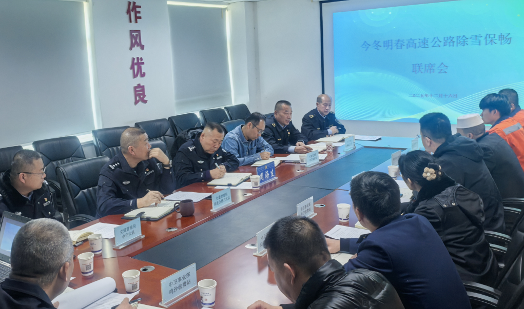 近日,宁夏交通运输厅执法监督局中卫分局执法五大队联合中卫市公安局交通管理支队高速公路三大队、宁夏交投中卫高速公路事业部及辖区养护部门、收费站等9家单位,召开今冬明春高速公路恶劣天气保通保畅联席会议,参会单位以“联勤联动、协同共治”为核心,细化应对举措、完善协作机制,全力筑牢辖区高速公路安全通行防线。